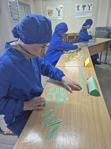 Теоретический этап проходил в учебном классе на территории мясокомбината и включал задания по учебным предметам профессионального компонента.
