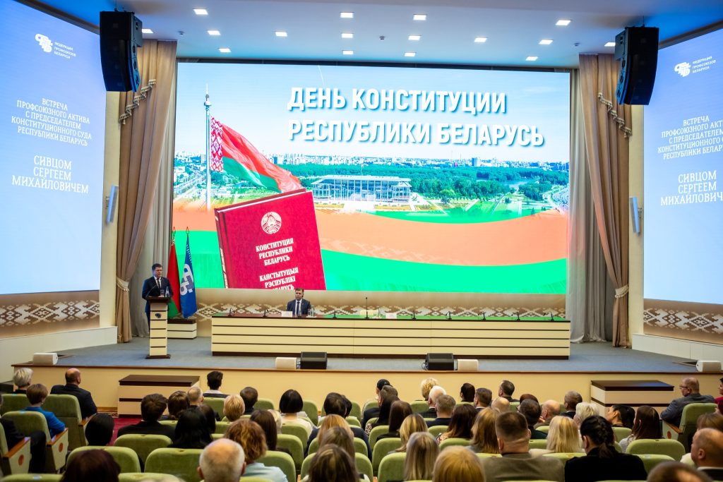 – Здесь собрались активисты Федерации профсоюзов Беларуси, которые отвечают за политику профсоюзного движения. Нам очень полезно узнать из первых уст о развитии белорусской конституции и тех процессах, которые происходят в нашем обществе, – сказал Юрий Сенько.